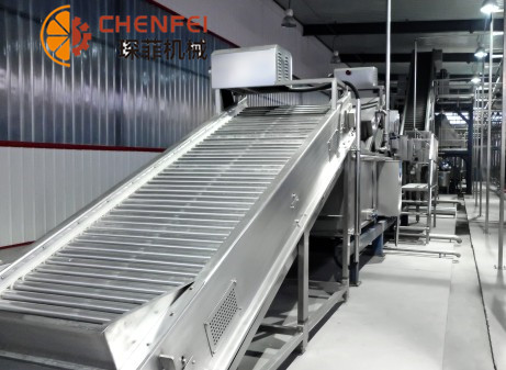 殺菌后的蘋果汁立即轉(zhuǎn)入冷水中快速冷卻至常溫。